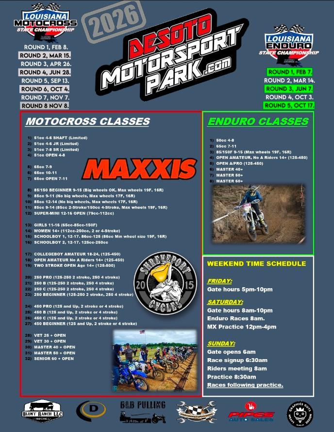 2026 Race Schedule Below.